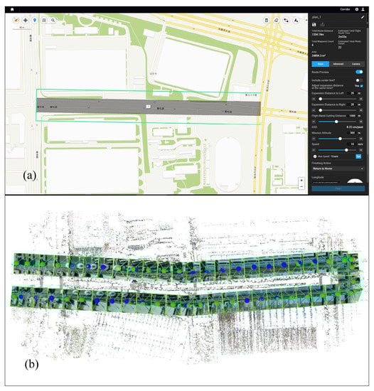 Route and images: (a) UAV route in update regions and (b) images acquired by UAV (DJI Terra [47]).