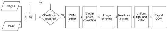 This study uses a UAV to acquire images of update regions. UAV remote sensing technology is a new type of surveying and mapping technology that has emerged in recent years with the development of UAV technology. UAV technology has the characteristics of low cost, high efficiency, and high resolution compared with the technology of acquiring images through satellites. The acquired images can be stitched into a DOM after processing.
