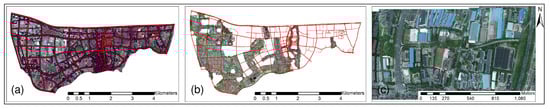 Table 2 shows the results of the proposed method compared with the other two methods. The manually corrected OSM road network in 2021 is considered the reference base. The proposed method obtained a precision of 85.31%, higher than 73.19% by Deng’s method and 76.07% by Wu’s method. The recall and F-score were 80.80% and 82.99%, respectively, which is higher than the other two methods. The results prove that the proposed composite update strategy can be very effective in updating new road segments and can accurately and comprehensively update new road segments.