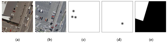 The original dataset contains three folders A, B and Label, which correspond to the phase 1 image, phase 2 image and real building change label (Figure 8a,b,e). On this basis, we added two new folders, C and D, corresponding to the positive and negative clicks (Figure 8c,d). Before starting training, we should initialize the clicks, which means generating the corresponding single channel pure white label. In the training process, each new generation updates the positive and negative clicks of the current samples. When the clicks of all training samples are updated, the next round of training will start.