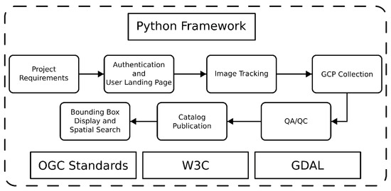 The development process started with an analysis of the project requirements. The project requires multiple geospatial libraries to accomplish online georeferencing capabilities. GDAL was used to establish most geoprocessing capabilities within the web application. Python was selected for the ease of implementing these geoprocessing capabilities using the GDAL Python bindings. Flask was selected as the web framework as it offers a lightweight and flexible design. Figure 1 shows the development flowchart.
