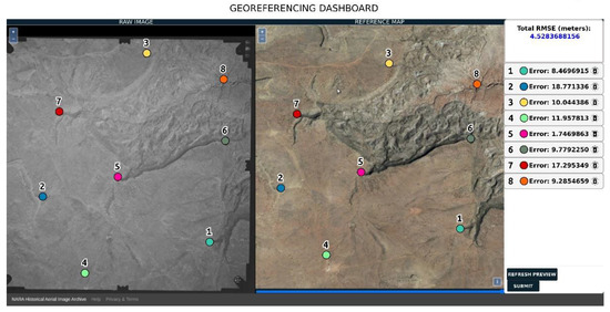 The advancements of web-based applications have enabled the development of online georeferencing tools. The workflow of using an online georeferencing tool is very similar to that of a desktop-based georeferencing tool, but instead of conducting georeferencing with a desktop application, online-georeferencing only requires a web browser and internet access [21]. Online georeferencing has many benefits. First, online georeferencing has a shallow learning curve since it is designed only for georeferencing operations. Users can become proficient in georeferencing within a short amount of time. Second, substantial amounts of images can be georeferenced with limited resources (i.e., internal personnel, hardware, and software) because online georeferencing enables crowdsourcing. Desktop-based georeferencing requires specialized staff, while online georeferencing allows specialists, professionals, teachers, students, and the public to participate in georeferencing concurrently, which can substantially increase production. Third, online georeferencing enables users to process images from anywhere around the world without any need of special software as long as they have internet access and a web browser, which is particularly important because many workers may need to work from home or work remotely due to various restrictions. Last, online georeferencing does not have a high demand for computing power since it only requires a modern web browser and internet access, which greatly reduces hardware requirements.