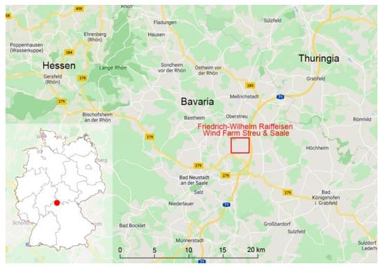The project named Friedrich-Wilhelm Raiffeisen Wind Farm Streu & Saale was approved on 7 May 2012 and built-in May 2017 and officially operated in September 2017 by WT manufacturer Senvion. It is located in the Main-Rhön region, northwest of Bavaria, adjacent to two states: Hessen and Thuringia (Figure 2). Its geographical coordinates are between 10°17′11″ to 10°18′29″ Eastern longitude and 50°22′16″ to 50°23′7″ Northern latitude.