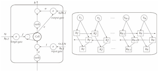 34] that incorporates specially designed memory units in the hidden layer compared to RNNs and can better solve the problem of gradient explosion or gradient disappearance that RNNs tend to have as the sequence length increases. The neuron structure of the LSTM model is shown in