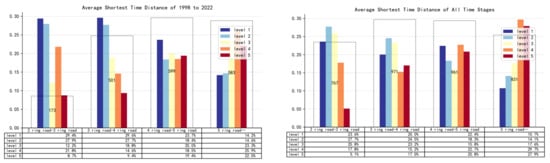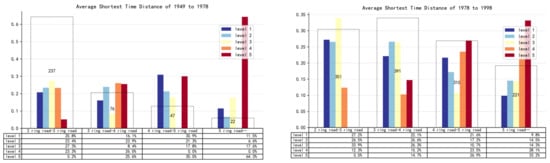 As per the research plan, the mean values of the shortest time distance for each community were measured and presented through the spatial-temporal classification model (Table 4, Figure 9 and Figure 10). From the measurement results, it could be seen that: