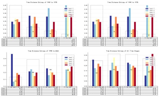 As per the research plan, the mean values of time distance entropy for each community were measured and presented through the spatial-temporal classification model (Table 5, Figure 11 and Figure 12). From the measurement results, it could be seen that: