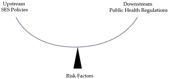 Firstly, the relevant health outcome, the “risk”, must be clearly defined so that an analysis of upstream and downstream policies is possible (see Figure 2) [3]. With that in mind, this research concerns the risk of COVID-19 infection, the (upstream) decision to exempt construction sites from lockdowns and the (downstream) need to suspend construction to impose mandatory vaccination when non-compliance with safety regulations was found to be widespread on sites.