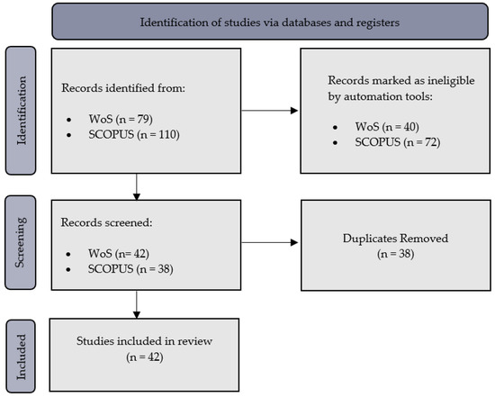 This returned 39 articles which were eligible for further analysis. A similar search was carried out on WoS, which identified 42 articles suitable for inclusion in the SLR for this study. Figure 3 illustrates the method by which articles were progressively filtered using the PRISMA standard.