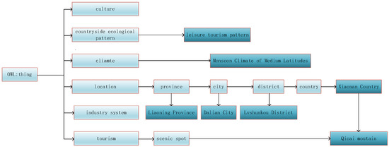 We collect and organize a large amount of scientific literature, encyclopedic knowledge and government websites on countryside ecological patterns through manual search and web crawler. We sort out the ontological information of countryside ecological patterns and construct the ontology framework of countryside ecological patterns by using the Protégé tool, as shown in Figure 1. In Figure 1, the boxes with light color mean classes, while the boxes with deep color mean instances.