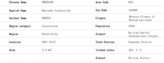Encyclopedia infobox information of Hancunhe Countryside, Fangshan District, Beijing.