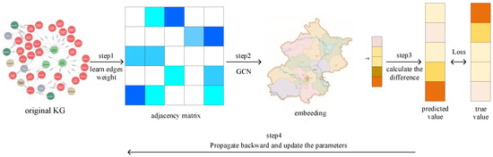 Step 1. Weights adjacency matrix: Convert the original heterogeneous countryside knowledge graph into a countryside knowledge graph with weights, learn the weights of the edges to obtain an adjacency matrix.