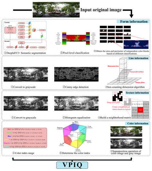 According to the definition of “visual entropy”, a landscape’s visual effects are more varied and provide the human eye with more visual information when the entropy is higher. As a result, we incorporate the method of measuring landscape morphological characteristics into expert/design theory in order to decompose visual information from four perspectives: form, line, texture, and color, to quantify the visual perception information contained in the street space. Second, this study was based on an objective description of the visual information. This emphasizes the need for objective measurement over evaluation. This implies that visual information does not have the function of evaluating goodness but must be cognitively integrated with actual urban street planning and design requirements. (Figure 2).