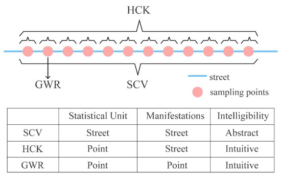 Differences in statistical units and expressions of SCV, HCK, and GWR.