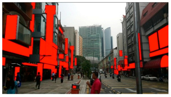 In the Malaysian setting, the Malaysia Investment Development Authority indicates that there are 179 local municipal offices in Malaysia, and it is their responsibility to approve signboard licenses. It is worth mentioning that the requisites of obtaining an outdoor advertisement billboard’s license may vary with regard to the stipulations set by a particular local authority [6]. The urgency of investigating visual pollution’s potential adverse effects on the perceived environmental quality has been discussed in previous research [18]; however, little research has discussed the effects of colour composition on urban streets’ public appreciation [19]. Therefore, the objective of this study was to investigate the effect of the urban environmental colour content on visual comfort.