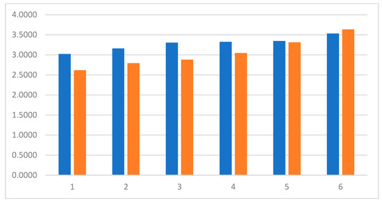 However, when the subjects were grouped into two age groups, 26 and above and 25 and below, the results indicated a significant difference with p-values of 0.023, 0.038, 0.004, and 0.046 in groups 1, 2, 3, and 4, respectively, which indicates that the null hypothesis of the variances being equal cannot be accepted. Alternatively, the analysis shows no significant differences in response to groups 5 and 6 where it seems like there were fewer variations in response to higher levels of pollution. The results showed that the older respondents seem to be more sensitive to lower levels of visual pollution represented by the first four groups, seen in Figure 10.