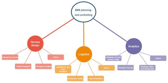 Looking at the EMS planning process helps to understand the ambulance routing and location problems. According to Reuter-Oppermann et al. [21], EMS planning divides into the following parts: the general design of the services, the logistics to fulfill the benefits, and the services’ analytics.