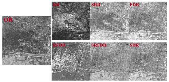 Considering that the reflectance of some wavelengths is not sensitive to SOMC, spectral transformations are implemented on the original reflectance (OR). The spectral transformations can enhance the detailed information of the spectrum and help to extract the spectral features of SOM [39,42]. Before the transformation, low-quality bands are removed to avoid more noise and uncertainty. It should be noted that image spectroscopy is a powerful tool for estimating the spatial distribution of SOMC. In addition to obtain spectral information, it can also observe continuous spatial distribution information [43,44]. Therefore, the impact of each operation on the image quality needs to be considered in the construction of SIs. It is necessary to ensure that surface reflectance images and the optimal SIs do not lose the ability to intuitively express surface information. In this study, the images with better quality were those without noticeable mosaic lines, stripe noise and other phenomena that blur the actual feature information in terms of visual effects.