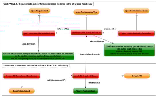 https://github.com/hobbit-project/platform/issues/531, accessed on 30 October 2021). Since the definition of the GeoSPARQL 1.1 requirements and conformance class vocabulary, these results can now be related to the actual definitions of GeoSPARQL requirements in RDF as shown in