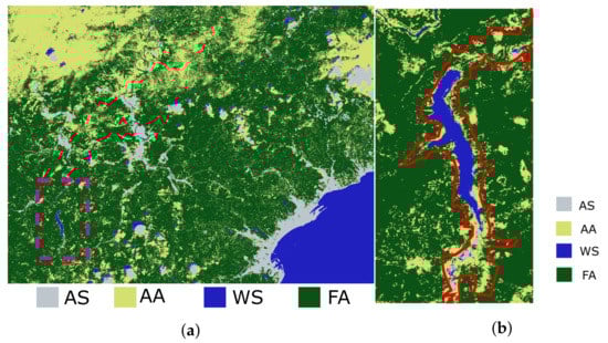 Anticipatory measures, such as early warnings and forecasts, are the most efficient to mitigate the effects of natural disasters [14]. In this context, the AS1 integrates a land-cover map, for an area characterized by an artificial dam, with information layers, such as flood-risk areas and hydrographic networks to highlight the land-cover classes with greater flood-risk.