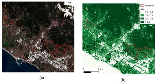 Borgogno-Mondino et al. [26] proposed a method based on S-2 band computation for the detection of plastic-covered vineyards describing the different spectral responses of the vines compared to the uncovered ones.