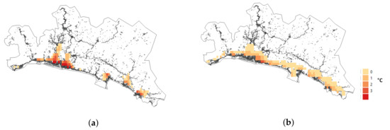 In the context of progressive urbanization and industrialization, the phenomenon of Urban Heat Islands (UHIs) was investigated with multiple perspectives [33] and by exploiting Copernicus S-3 products: Shumilo et al. [34] assessed the UHI effect for a single urban area considering green areas and population density distributions, while Sobrino et al. [35] proposed a new method to assess and compare UHI values of urban agglomerations around the world. Finally, Hidalgo Garcia et al. [36] determineed nightly factors that enhanced the UHI effects in different seasons.