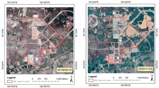 Table 3 shows the qualitative monitoring results of parks. Compared to the pre- COVID-19 year, only two parks displayed NTL_BA_R value less than 1. Therefore, the operation status of those two parks was severely impacted by the COVID-19 outbreak. Only three parks demonstrated to have NTL_Y_R value less than 1. This indicated that the operation status of those three parks in 2020 was worse than in 2019. However, there were 11 parks with NTL_Y_Ri values < 1, indicating the fluctuation in their operation status. The NTL data of most of the parks started to decline in January. The timing of the emergence of COVID-19 cases in Southeast Asian countries was from January to March 2020. This shows that the operation of these parks and surrounding areas was rapidly affected after the outbreak of COVID-19. The SCDZ was the only park with a NTL_Y_Ri value > 1 for all of the months, as it is still under construction. The construction area increased from 0.36 km2 on 12 April 2019 to 0.82 km2 on 23 November 2020, which increased its NTL value (Figure 5).