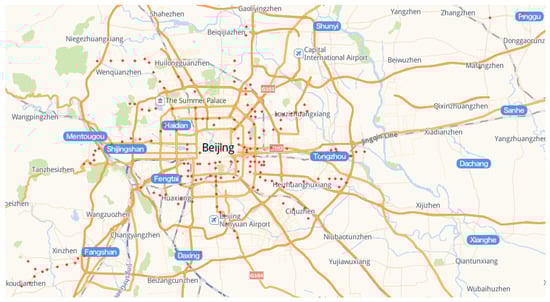 The subway station data in Beijing is obtained by capturing the information related to the Goode map. For our experiment, the new subway stations built from 2013 to 2020 (96 stations) and the planning subway stations (84 stations) as shown in Figure 5.
