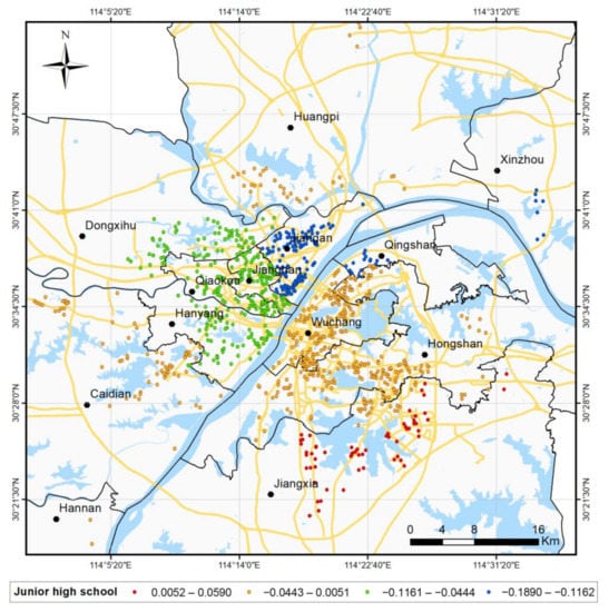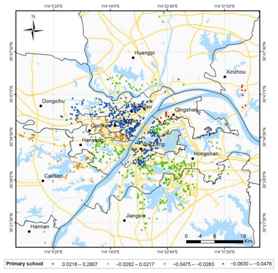 - Liu, L.; Yu, H.; Zhao, J.; Wu, H.; Peng, Z.; Wang, R. Multiscale Effects of Multimodal Public Facilities Accessibility on Housing Prices Based on MGWR: A Case Study of Wuhan, China. ISPRS Int. J. Geo-Inf. 2022, 11, 57. [Google Scholar] [CrossRef]