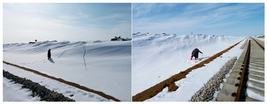- Liang, S.; Huo, Z.; Niu, Y. Assessment of snow drifting hazard along railway a case study of JYH railway in Xinjiang, China. In Proceedings of the 2009 International Conference on Environmental Science and Information Application Technology, ESIAT 2009, Wuhan, China, 4–5 July 2009; Volume 1, pp. 44–47. [Google Scholar]