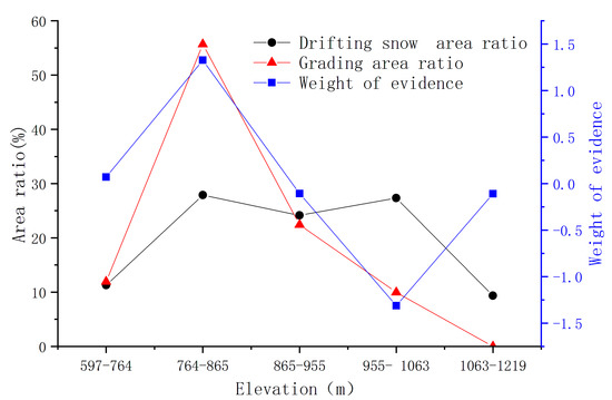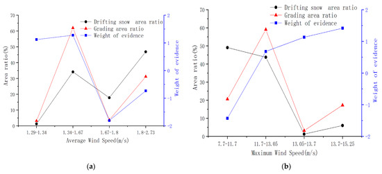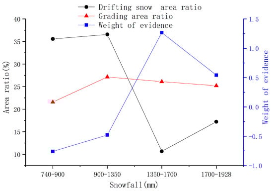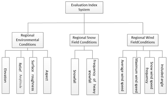 - Taking Afuzhun Railway in Xinjiang as the specific research object, the evaluation index system for drifting snow susceptibility on the railway can be established by selecting ten influencing factors, such as elevation, snowfall, the angle between the wind and the line directions. Using the DSSI proposed in this paper, the WOE model can be used to obtain the preliminary zoning of drifting snow susceptibility along the railway.