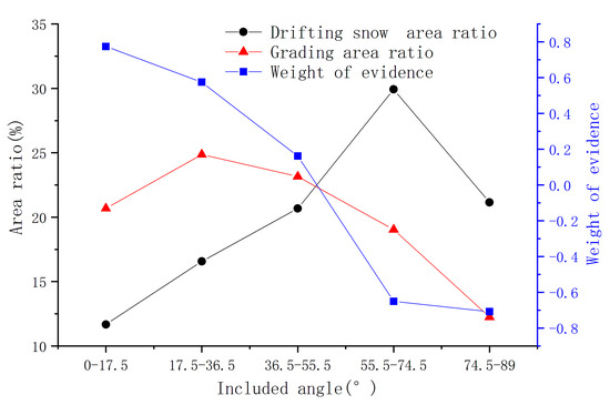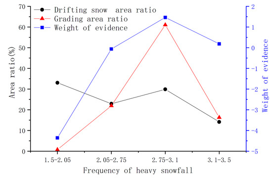 - The weight analysis results are consistent with the theoretical analysis. The factors that have a greater contribution to the drifting snow susceptibility are the angle between the wind and the line directions, the maximum wind speed, the amount of snowfall, and the frequency of snowfall.