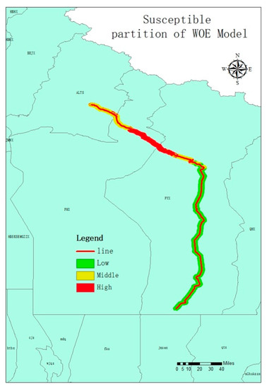 - In the relatively mature application fields for WOE, such as landslide susceptibility evaluation, the evaluation accuracy of this evaluation model can reach 0.8 or even higher. In comparison, the evaluation accuracy of this model for linear engineering (such as railway) is low. In the future application of this research, we will focus on optimising the evaluation model to improve the evaluation accuracy of the model.