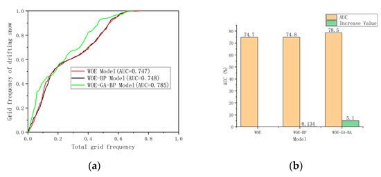 - Compared with the WOE and WOE-BP models, the WOE-GA-BP model obtained a higher proportion of high-susceptibility areas in the susceptibility zoning map and included more drifting snow occurrence areas, which has more practical significance for guiding drifting snow protection areas.