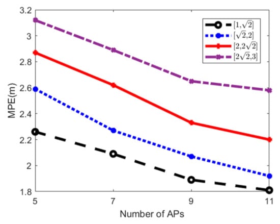 MPE of three algorithms against APs number (Area 1).