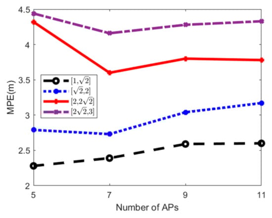 In addition, the empirical value of the radius is given. According to the experimental results conducted on two experimental areas, the radius should be set between 1 and times the adjacent RP spacing. The experimental areas in this paper are general, so the proposed algorithm may be applied on a large scale. Furthermore, fingerprint-based positioning based on Wi-Fi or other networks (for example, Bluetooth) has the same procedure, so the empirical value of the radius can be scaled for fingerprint-based positioning based on other networks.