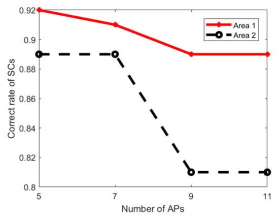 SCs’ correct rate of two experimental areas against the number of APs.