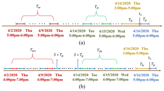 - MSTGCN [13]. A multi-component network for traffic flow forecasting. The best combinations adopted in this paper are , , and .
