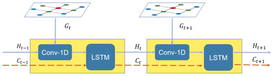 - STGCN [9]. The model employs one-dimensional convolution and graph convolution to extract spatial–temporal features, which are widely used in traffic flow forecasting. Both the graph convolution kernel size and temporal convolution kernel size are set to 3 in the experiments.