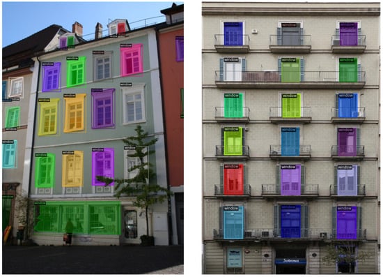 - Ali, H.; Seifert, C.; Jindal, N.; Paletta, L.; Paar, G. Window detection in facades. In Proceedings of the 14th International Conference on Image Analysis and Processing, ICIAP 2007, Modena, Italy, 10–14 September 2007; pp. 837–842. [Google Scholar] [CrossRef]