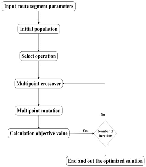 The genetic algorithm was first proposed by Holland in 1975 [44,45]. This method is widely used to solve practical routing problems. Street patrol is a common vehicle routing problem (VRP). Jeon et al. proposed a novel hybrid genetic algorithm (HGA) to solve the capacity VRP and the generation of the initial solution in the genetic algorithm has been improved [46]. Berger et al. explored an adaptive genetic algorithm (AGA) to solve the VRP with a time window [47]. The algorithm makes the two populations evolve at the same time by modifying the genetic operators. Zhou et al. presented a multi-objective genetic algorithm (MOGA) by improving the selection operation and the one-point crossover operator and mutation operator to solve the vehicle routing problem [48]. However, there are few studies that focus on the multi-point crossover operators and mutation operators in genetic algorithm.