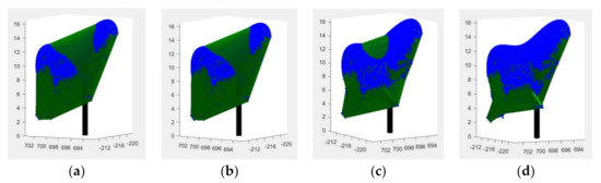 The segmented point clouds are then 3D modeled. The resulting 3D model is saved in surface format stored in the faces and vertices table. The goodness of fit (R2) value is then calculated to see the quality of the modeling results. The value of R2 is calculated using a formula in Equation (10).