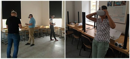 Technologies in education transform the processes by which education can take place and allow some topics to be taught more effectively [1,2,3,4,5], in a more fun way [6,7] or more interactively [8,9]. One of the technologies being discussed concerning new ways of working with education and new educational practices is immersive virtual environments (IVEs) [1,10,11]. Technology can serve as a tool to emphasize the constructivist elements of teaching [12,13], including collaboration, the ability to form one’s views and opinions on a particular issue [10,14,15], and the development of active learning. Working in virtual environments aims to support constructivist approaches that could otherwise be applied to a limited range of topics or would be difficult to employ.