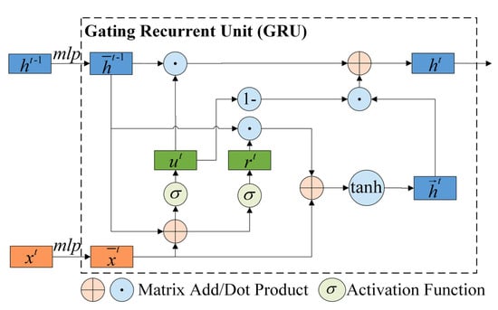 According to the gating mechanism in the GRU module, we first linearly project the current input and the previous hidden state into a higher dimensional embedding and the hidden state in iterations.