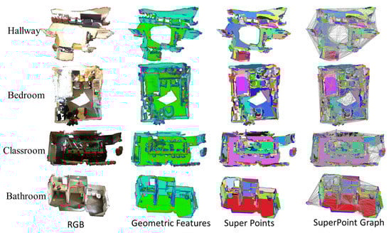- Landrieu, L.; Simonovsky, M. Large-Scale Point Cloud Semantic Segmentation with Superpoint Graphs. In Proceedings of the 2018 IEEE/CVF Conference on Computer Vision and Pattern Recognition, Salt Lake City, UT, USA, 18–23 June 2018. [Google Scholar]