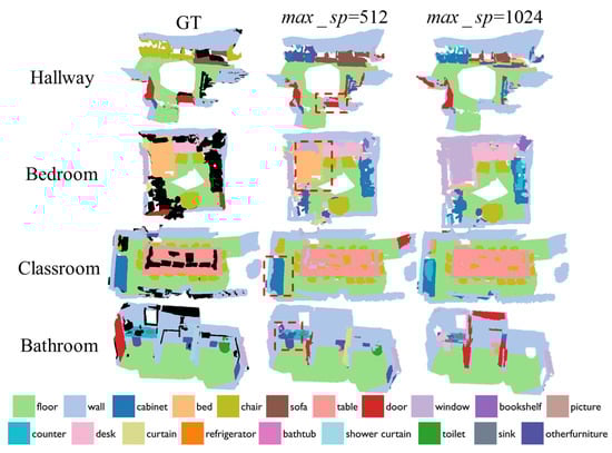 We conducted several ablation studies to validate the effectiveness of our proposed network by replacing the local embedding network and global aggregation work with the counterparts of current state-of-the-art networks and adjusting the amount of IAG blocks stacked in the IAG–MLP network. Moreover, we adjusted the granularity of the superpoint graph by preprocessing point clouds in different subsampling intervals and predefining the maximum number of superpoints for graph convolution to investigate the optimal graphical structure for deep learning.