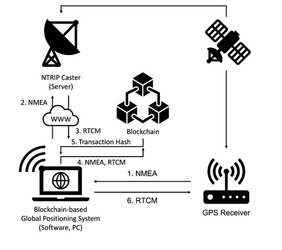 Therefore, the current study was conducted to solve the problem of data forgery and falsification, which relates to the existing satellite survey system using the Ethereum blockchain. Assuming that there are no forged data in the communication between CORS and the server, and forged data in the communication between the user and the server, a blockchain-based decentralized satellite surveying system is implemented using data from the NMEA and RTCM. In the NMEA transmission/reception process, the received NMEA is transmitted to the server and recorded on the Ethereum network simultaneously. Subsequently, the RTCM received from the ground station is recorded on the Ethereum network, and correction is performed simultaneously. To this end, prototype software that communicates between the GPS receiver and the Ethereum blockchain network is produced, and the reliability and stability of this network is verified and compared with the existing system. It is crucial to prevent damage by securing the integrity of survey data, including surveyors and survey processes, but this has not been resolved in decades.