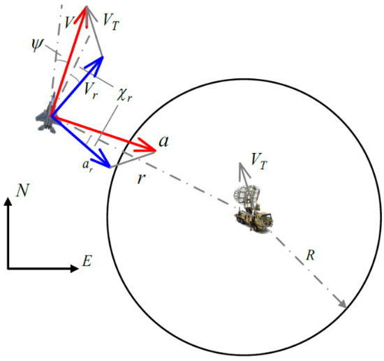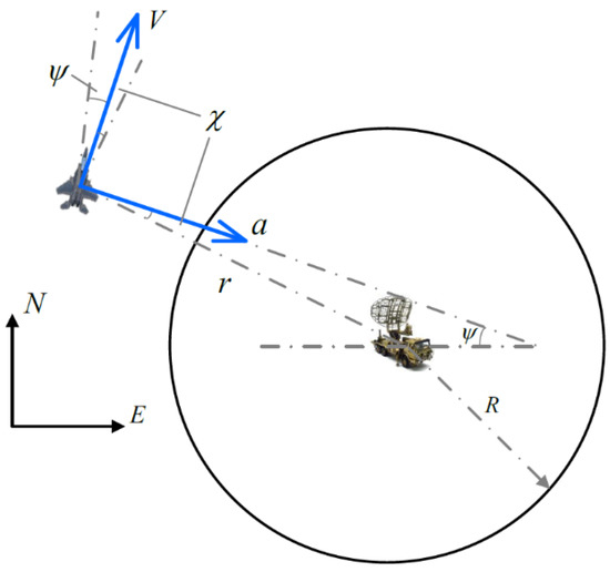 For the moving target, we use the relative velocity and side-bearing angle between the UAV and the target as the states, as shown in Figure 3.