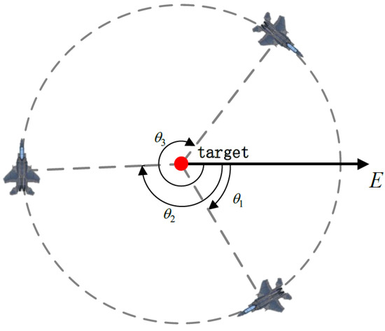 As the . The phase between each UCAV will converge to . Assuming UAV 2 is flying around the target, therefore, we can get . Note that , then we can get the desired lateral guidance law: