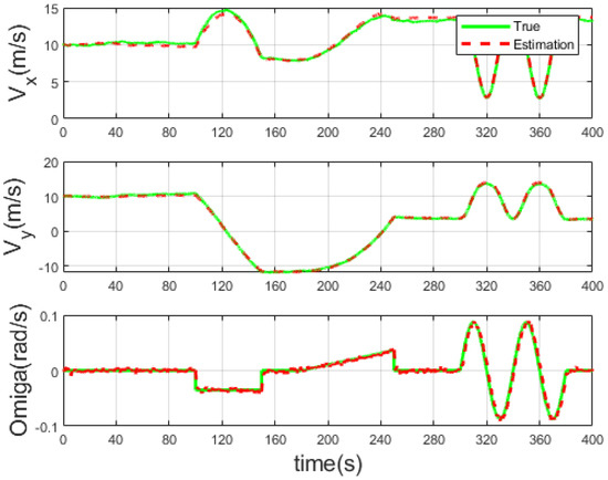 The estimated results of velocities are shown in Figure 5. Although the vehicle turning rate is not fixed, the results show that the estimation results of the OTSCKF method are accurate in speed.
