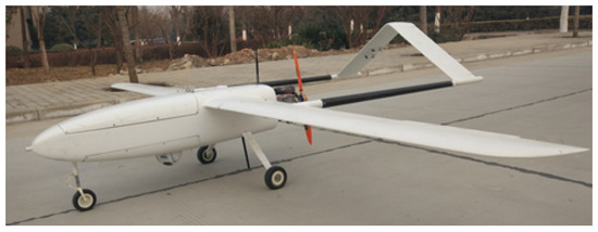 A six-degree-of-freedom model of the UAV was adopted for this study. The UAV model designed by our laboratory is shown in Figure 10. Table 2 gives the necessary parameters. An autopilot is designed for the model which can realize self-stable attitude control. The start point of the ground target is set to (200 m, 200 m) and the velocity is set to (8 m/s, m/s).